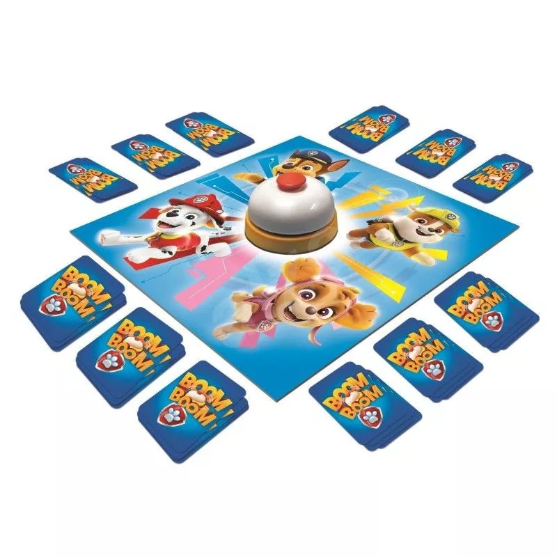 Csatlakozzon a bátor Mancs Őrjárat kutyusokhoz egy izgalmas és pörgős kártyagyűjtő versenyben! A Boom Boom társasjátékban a cél, hogy a játékosok a többieket megelőzve összegyűjtsenek négy egyforma, kedvenc mesehősüket ábrázoló kártyát. A játékosok egyszerre cserélgetik a lapjaikat a játéktáblán lévőkkel, így a figyelem és a gyorsaság kulcsfontosságú a győzelemhez.