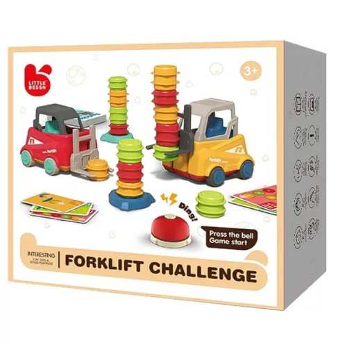 A Targonca kihívás egy izgalmas logikai és gyorsasági társasjáték, ahol a játékosoknak targoncákkal kell újraalkotniuk a feladatkártyákon látható hordótornyokat. A játék fejleszti a szem-kéz koordinációt, a finommotorikát és a logikus gondolkodást, miközben szórakoztató versenyt biztosít.