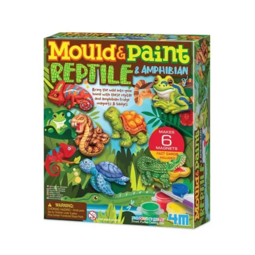 Készítsen hat különböző hüllőt és kétéltűt ezzel a kreatív 4M gipszkiöntő szettel! A készlet mindent tartalmaz, amivel a gyerekek egyedi hűtőmágneseket vagy kitűzőket alkothatnak, miközben fejlesztik kézügyességüket és kreativitásukat.