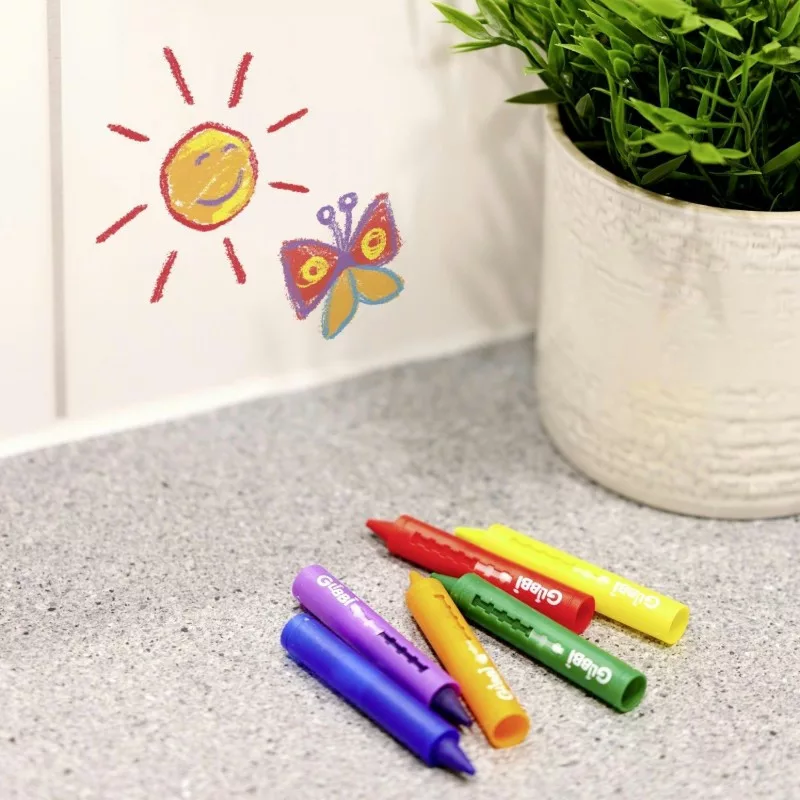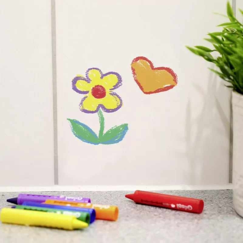 • Gondtalan szórakozás: A zsírkréták könnyen lemoshatók a csempéről és a kádról, így a szülőknek nem kell a takarítás miatt aggódniuk.
