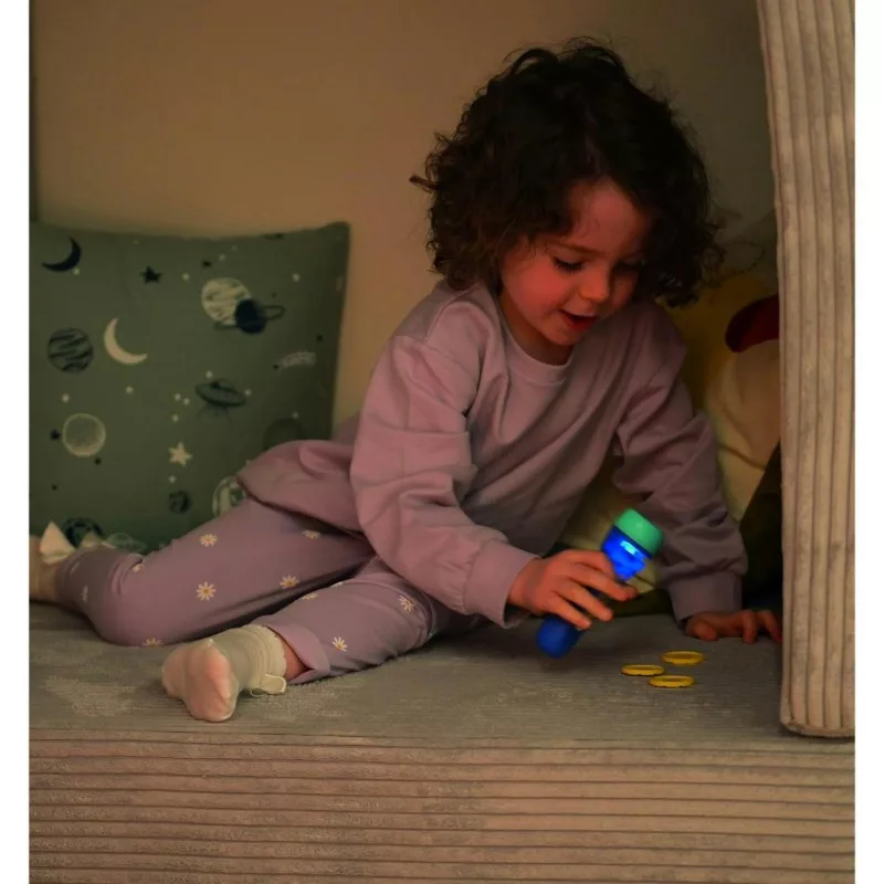A kompakt méretű, strapabíró műanyagból készült zseblámpa tökéletesen illeszkedik a kis kezekbe. Könnyen kezelhető, így a gyerekek önállóan is használhatják. Ideális választás az elalvás előtti rutin megnyugtató és szórakoztató részévé tételéhez, segítve a kicsiket az álomba merülésben egy varázslatos, állatokkal teli világon keresztül.