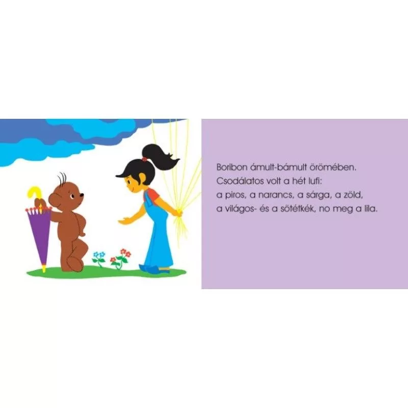 • Fejleszti a korai készségeket: A történet játékosan tanítja a színeket és a számolást, miközben Boribon lufijai egyenként eltűnnek.