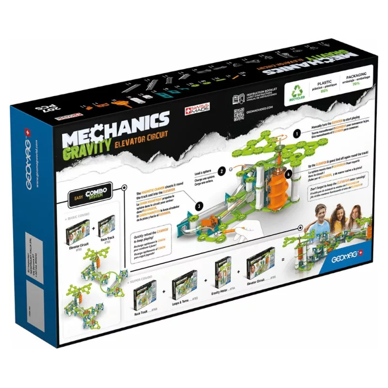 A tudományosan kíváncsi, kreatív gyermekek garantáltan imádni fogják, az összesen 207 db építőelemből álló, Geomag Mechanics Gravity: Elevator Circuit - mágneses építőjáték készletet. Amellett, hogy igen szórakoztató elfoglaltság, darabjai kiváló minőségű, 86%-ban újrahasznosított műanyagból készültek, így környezetvédelmi szempontból is nagyszerű választás.