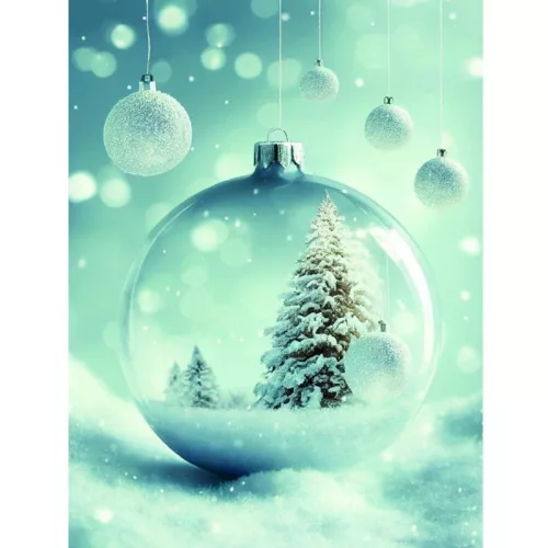 Az ajándékozás öröme már a csomagolásnál kezdődik. Ezzel a gyönyörű, óriás méretű dísztasakkal garantáltan emlékezetessé teheti a pillanatot. A tasak egy varázslatos téli jelenetet ábrázol: egy átlátszó karácsonyi gömb belsejében egy hófödte fenyőfa áll, miközben körülötte finoman szállingózik a hó. A hideg, kékes-zöldes háttér és a csillogó fények tovább fokozzák az ünnepi hangulatot.