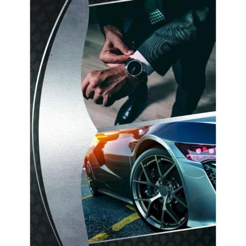 A tasak különlegessége a kétoldalas mintában rejlik. Egyik oldalán egy dinamikus sportautó látható, amely a sebességet és a modern technológiát szimbolizálja, míg a másik oldalon egy öltönyt és karórát viselő férfi jelenik meg, ami az eleganciát és a magabiztosságot sugározza. Ez a kettősség teszi a csomagolást sokoldalúvá és igazán egyedivé.