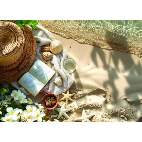 Az ajándékozás öröme már a csomagolásnál kezdődik. Ezzel a gyönyörű, tengerparti jelenetet ábrázoló dísztasakkal nem csupán egy tárgyat, hanem egy hangulatot is átadhat. A gondosan megtervezett grafika egy békés, napsütötte tengerpartra repíti az ajándékozottat, ahol a homokos parton kagylók, tengeri csillagok, egy szalmakalap és egy nyitott könyv pihen.