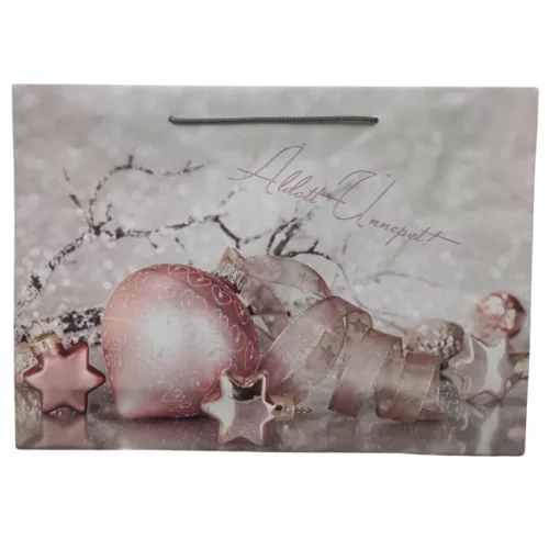 Tegye ajándékát még különlegesebbé ezzel az óriás méretű, elegáns karácsonyi dísztasakkal! Fényes, lakkozott felülete és pasztell színvilágú, ünnepi mintája stílusos csomagolást biztosít a nagyobb meglepetések számára is.