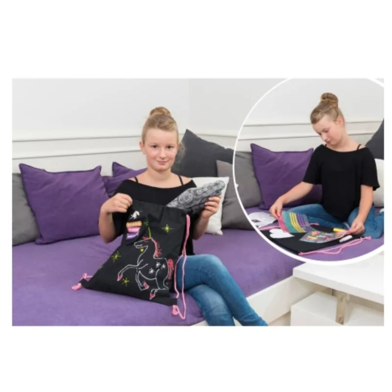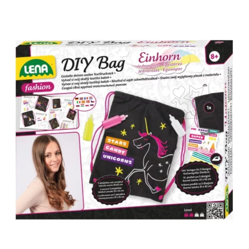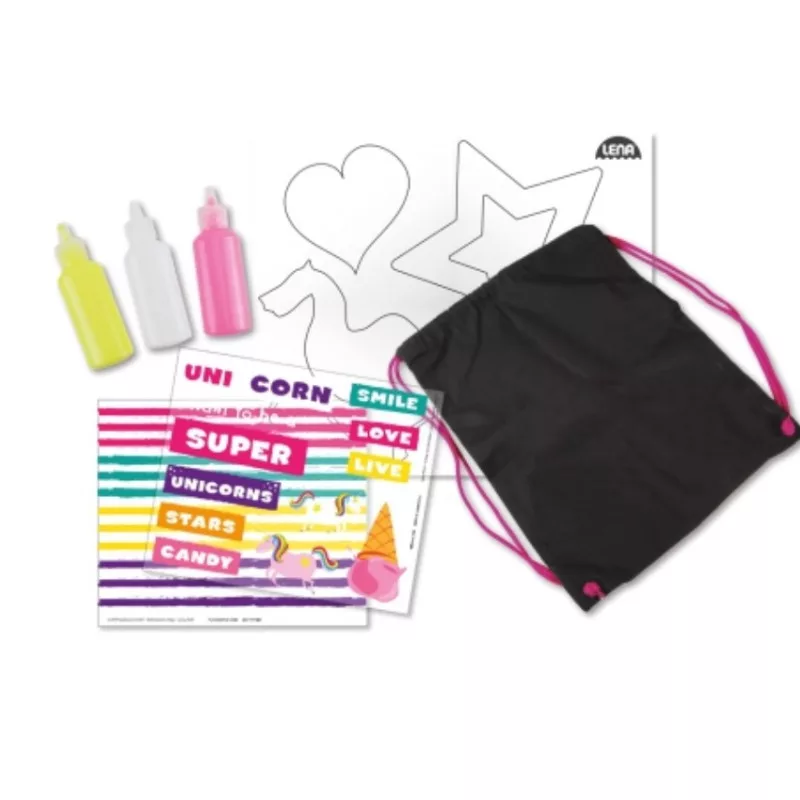 A Lena - Színezhető tornazsák unikornisos sablonnal játékszett újabb nőcis perceket ígér a csemetéknek már 8 éves kortól, így ideális ajándék bármelyik csemetének, aki szeret alkotni, kreatívan gondolkodni, és odavan a divatos tornazsákokért. Mert a szettben egy fekete tornazsák is érkezik, amin remekül fognak mutatni a dobozban megbújó élénk festékek.
