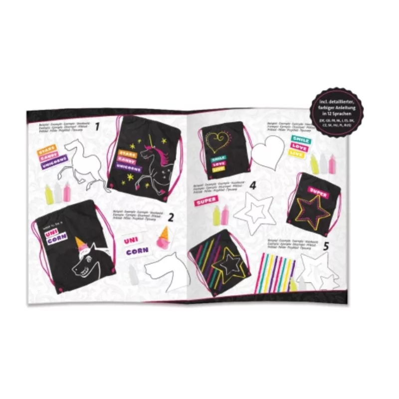 A készlet számtalan lehetőséget teremthet a gyerekeknek, hogy megvalósítsák elképzeléseiket és tetszés szerint tegyék különlegessé a vagány tornazsákot. Így minden adott lesz ahhoz, hogy szárnyra kapjon a kreativitás, és támogató, egészséges módon növekedjen az önbizalom, valamint kiteljesedhessen kicsik és nagyok stílusérzéke.