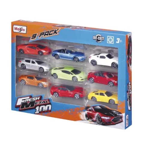 Csomagolás tartalma9 db különböző Fresh Metal kisautó (a tartalom készletenként változhat)