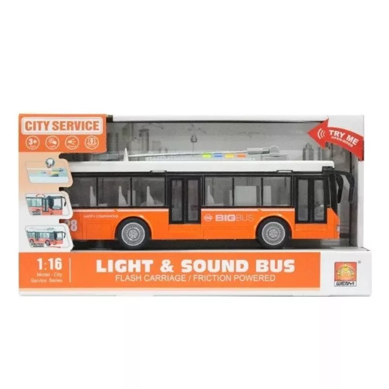 Ismerje meg a WenY City Service narancssárga játék trolibuszt, amely 1:16-os méretarányban, valósághű fény- és hanghatásokkal teszi izgalmassá a játékot. A hátrahúzható, lendkerekes meghajtás és a részletgazdag kidolgozás garantálja a szórakoztató szerepjátékokat.