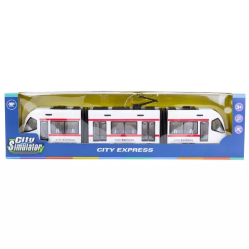 Lépjen be a nyüzsgő városi tömegközlekedés világába a City Simulator - City Express fehér villamossal! Ez a modern és részletgazdag játék jármű arra vár, hogy gyermeke a vezetőfülkébe képzelje magát, és elinduljon a képzeletbeli útvonalon, hogy az utasokat biztonságban eljuttassa úti céljukhoz.