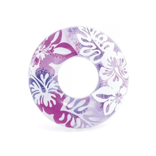 A nyári strandolások és medencés kikapcsolódások igazi slágere az Intex Clear Color úszógumi, amely vidám, trópusi mintáival és élénk lila színeivel azonnal a figyelem középpontjába kerül.