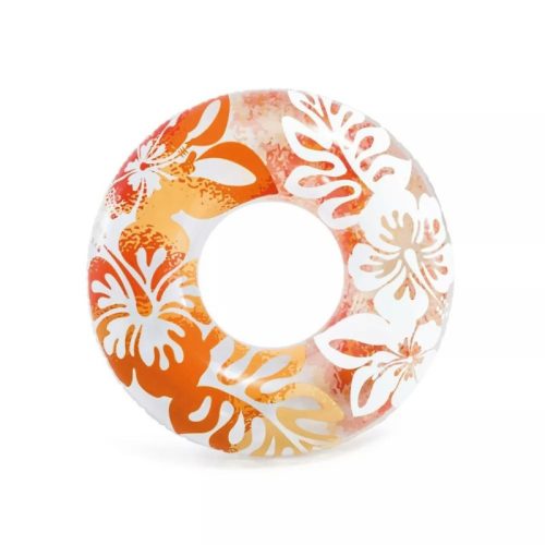 A nyári strandolások és medencés kikapcsolódások igazi slágere az Intex Clear Color úszógumi, amely vidám, trópusi mintáival és élénk narancssárga színeivel azonnal a figyelem középpontjába kerül.