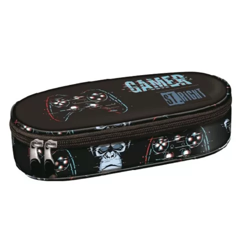 Ez a Majewski St.Right ovális tolltartó a videojátékok rajongóinak készült, strapabíró, szivaccsal merevített kialakítással. Belső rendszerezői és tágas tere praktikussá teszik a mindennapi iskolai használatot, miközben menő gamer mintája egyedi stílust kölcsönöz.