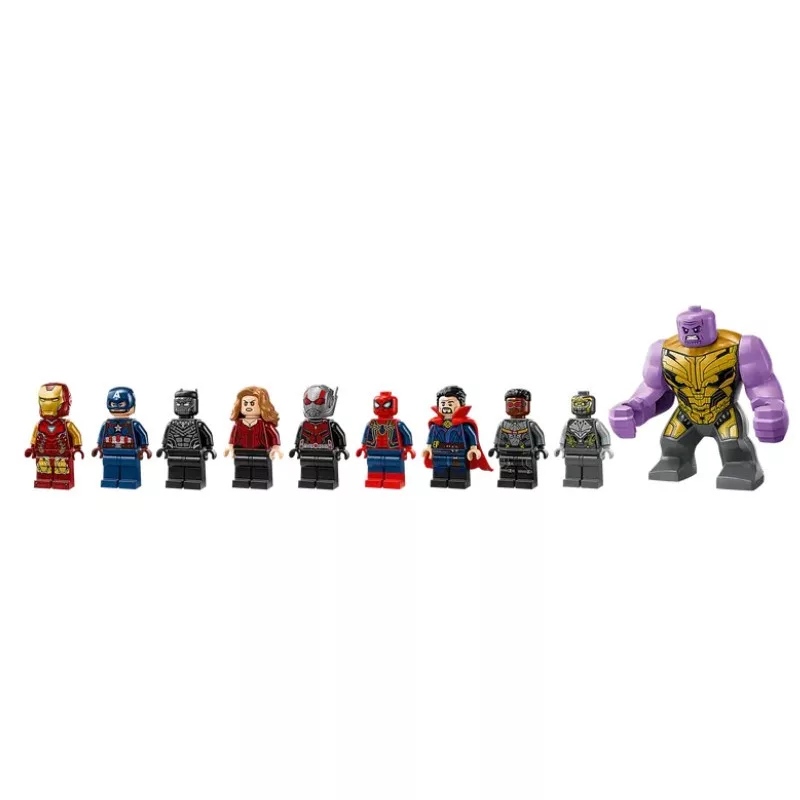 A készlet segítségével újraalkothatók a Marvel Studios: Bosszúállók – Végjáték című film emlékezetes jelenetei, sőt, a gyermek saját, fantáziadús kalandokat is kitalálhat. A 621 elemből álló építőszett tartalmaz egy látványos, dimenzióportálos harci jelenetet, ahol a hősök szembeszállnak Thanos-szal. A dobozban 9 db minifigura is található: Amerika Kapitány, Vasember MK85, Fekete Párduc, A Skarlát Boszorkány, Vaspók, Doktor Strange, Hangya, Sólyom és egy Chitauri katona, továbbá egy hatalmas Thanos figura és egy teljesen csuklós Hangya robot is. A mozgatható elemeknek, fegyvereknek és kiegészítőknek köszönhetően a jelenetek igazán dinamikusak és sokféleképpen variálhatók.