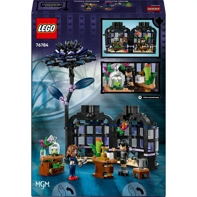 A készletben két ismert karakter minifigurája is megtalálható: Wednesday Addams és Marilyn Thornhill professzor. A gyermekek a karakterek segítségével újrajátszhatják a sorozatból ismert jeleneteket, vagy épp saját, új kalandokat találhatnak ki – legyen szó titokzatos iskolai történésekről, varázslatos órákról vagy rejtélyes felfedezésekről.