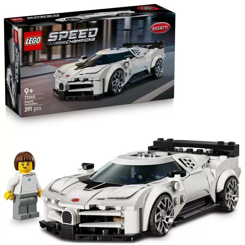 A LEGO Speed Champions 77240 Bugatti Centodieci hiper sportautó szett egy különleges, 291 db LEGO elemből álló építőkészlet, amely a neves Bugatti Centodieci modell előtt tiszteleg. Kifejezetten a 9 éves vagy nagyobb gyermekek számára készült, de minden autórajongó számára élvezetes és látványos élményt nyújt – akár építésről, akár játékról, akár kiállításról van szó.