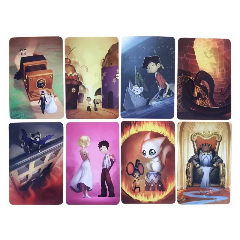 A Mesélő szerepében Önön a sor, hogy egyetlen szóval, egy mondattal vagy akár egy dallammal utaljon a kezében tartott lapra. A többi játékos feladata, hogy a saját kártyái közül kiválassza azt, amelyik a leginkább illik az Ön rejtélyes leírásához. Vajon sikerül úgy céloznia, hogy legalább egy valaki rájöjjön az Ön lapjára, de ne mindenki? Az empátia és a beleérző képesség kulcsfontosságú a győzelemhez ebben a lenyűgöző társasjátékban.