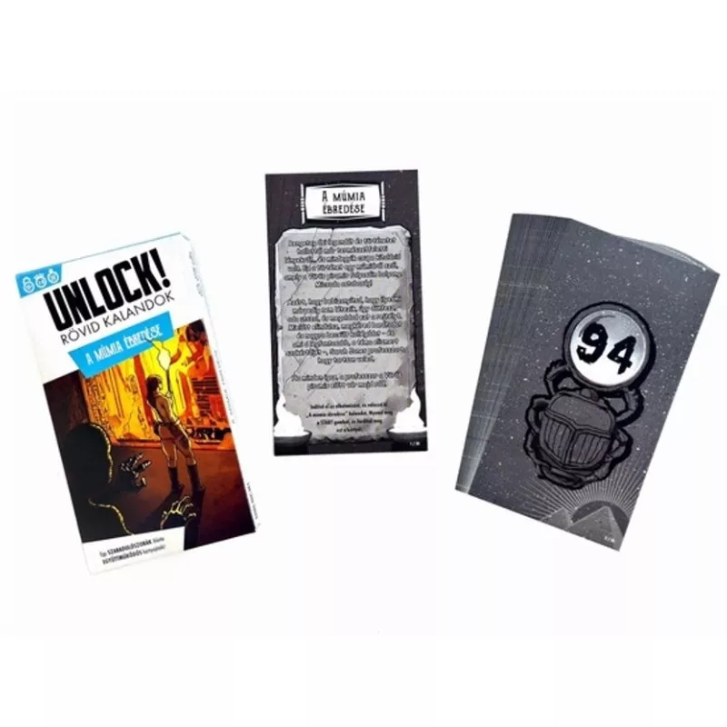 Éljenek át egy izgalmas szabadulószoba élményt az Unlock!: A múmia ébredése társasjátékkal! Ebben a kooperatív kártyajátékban egy elátkozott piramis rejtélyeit kell megfejteniük egy ingyenes mobilalkalmazás segítségével, miközben fejlesztik logikai és problémamegoldó készségeiket.