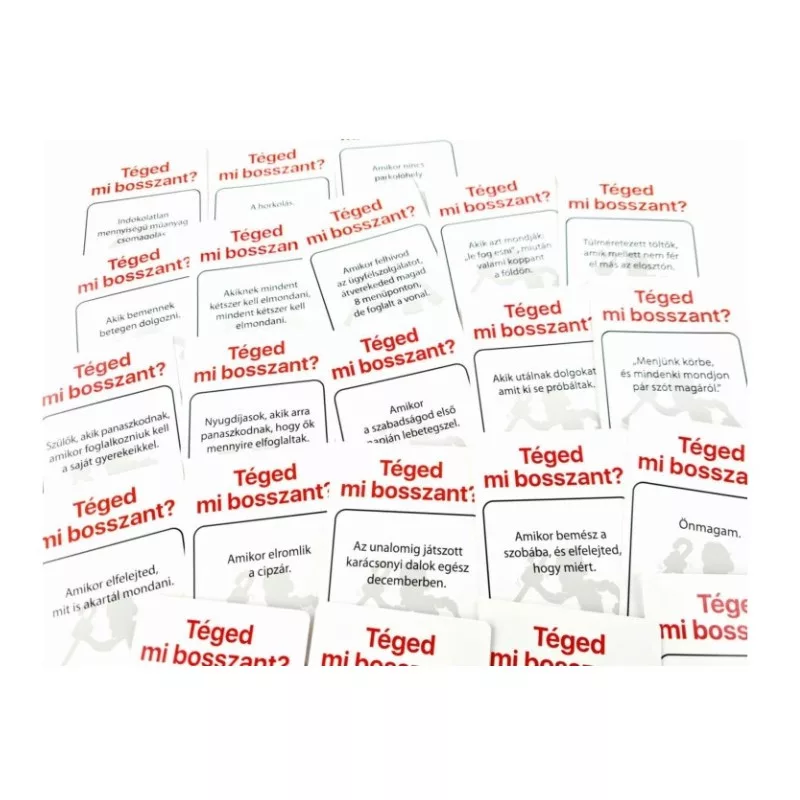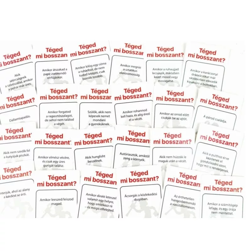 Ez a partijáték garantáltan beszélgetéseket indít el, és olyan vicces helyzeteket teremt, amelyekre sokáig emlékezni fognak. Minden kör újabb lehetőséget ad a sztorizásra és a vidámságra, miközben kiderül, hogy valójában ki a legnagyobb zsémbes a társaságban. A játék nem igényel komoly stratégiát, csupán egy jó adag humort és empátiát.