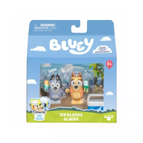 Élje át újra a népszerű Bluey mese egyik legkedvesebb jelenetét ezzel a dupla figuracsomaggal! A szett Bingót és Socks-ot tartalmazza, akik egy forró napon jégkrémmel hűsítik le magukat a hűtőtáskából.