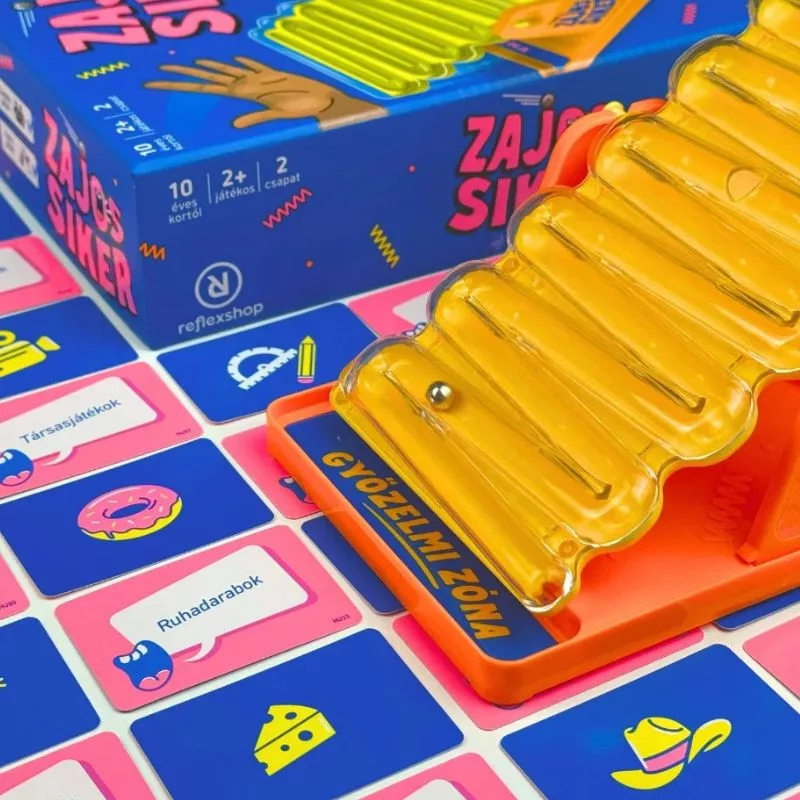 A Zajos siker egy pörgős és hangos, csapatalapú partijáték, ahol a gyors észjárás és a még gyorsabb beszéd a győzelem kulcsa. Billentsék a pályát a helyes válaszokkal, és ne hagyják, hogy a fémgolyó az Önök oldalán érjen a győzelmi zónába!