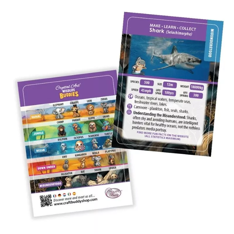 Lépjen be a Crystal Art Buddies csillogó világába, ahol a kreativitás és a gyűjtői szenvedély találkozik! Ezzel a különleges gyémántszemes kirakó készlettel a gyermekek egy barátságos mosolyú cápát kelthetnek életre, amely a "Misunderstood" (Félreértett) sorozat bájos tagja. A készlet tökéletes választás mindazoknak, akik szeretik a tenger élővilágát és az alkotó tevékenységeket.