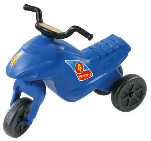 Ezt a műanyag, sötétkék játékmotort a legapróbb motorversenyzők részére ajánljuk, ugyanis ülőmagassága kb. 25 cm. Ettől függetlenül természetesen hamar a kis motorosok kedvencévé válik majd, ugyanis egyszerű, az igazi sportmotorokat idéző felépítése hihetetlenül vagánnyá és áramvonalassá teszi, élmény lesz vele a száguldás az udvar vagy akár a játszótér betonján. A lábhajtás remek edzést biztosít a kicsik lábainak, a biztonságról pedig a 3 kerék gondoskodik, ennek köszönhetően nehéz felborulni vele. Motorozás közben ez az eszköz is fejlesztheti a kicsik állóképességét, finom-motorikus képességeit és térérzékelését.