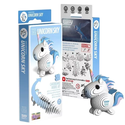 Alkossa meg saját Égi Unikornisát ezzel a környezetbarát, kartonból készült Eugy 3D puzzle-val! A kreatív elfoglaltság fejleszti a kézügyességet, a térlátást és a türelmet, az elkészült figura pedig a szoba dísze lehet.