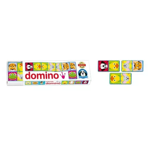 A kicsiknek a klasszikus dominó játék új formája elérhető. A színes képekkel díszített dominón különböző állatok képei láthatók, így már a kisebb gyermekek is átélhetik a dominóval való játék élményét. A feladat egyszerű: a dominókat úgy kell alakzatba helyezni, hogy az azonos állatok kerülhetnek egymás mellé. Induljon a játék! Lepje meg gyermekét ezzel a szórakoztatóan fejlesztő játékkal. A Képes dominó - Állatok készlettel való játék kiválóan fejleszti a gyermekek logikus gondolkodását, alakfelismerését, miközben játékosan ismerkedhet meg az állatok világával.