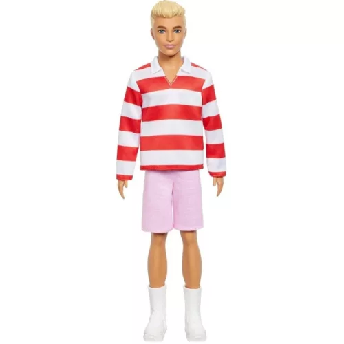 Ez a Ken baba egy igazán laza és divatos szettben érkezik, amely tökéletes egy baráti találkozóhoz vagy egy városi kalandhoz. Egyedi stílusa egy piros-fehér csíkos, hosszú ujjú galléros pólóból és egy feltűnő rózsaszín rövidnadrágból áll. A modern, lezseren elegáns megjelenést a fehér sportcipő és a hozzá illő magas szárú zokni teszi teljessé.