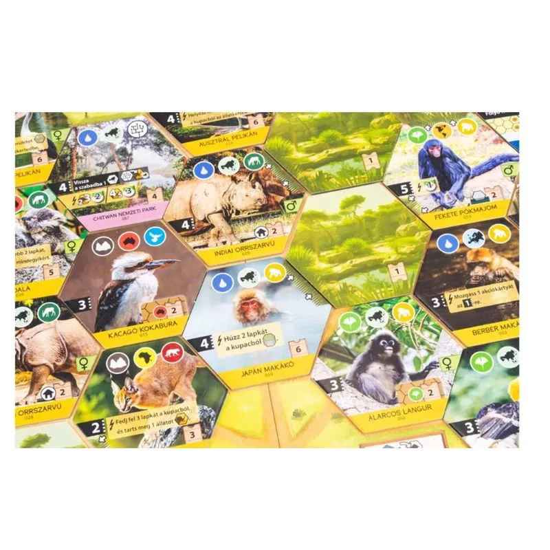 Csomagolás tartalma1 db játéktábla, 5 db állatkerttábla, 2 db rendező, 135 db állatkertlapka, 20 db akciókártya, 10 db segédletlapka, további jelölők és tokenek, 1 db játékszabály