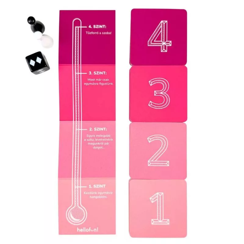 Ez a kifejezetten pároknak tervezett intim társasjáték 69 pikáns feladatkártyát rejt, amelyek garantáltan felpezsdítik az estéiket. A játék lényege nem a versengés, hanem a közös kaland és a bizalom elmélyítése. A feladatok négy, egymásra épülő nehézségi szinten vezetik Önöket végig, az ártatlanabb, bizalomépítő kihívásoktól egészen a legforróbb, legbevállalósabb kalandokig.