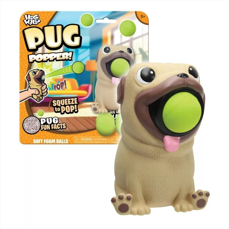 A Popper működése pofonegyszerű: csak nyomja meg a mopsz hasát, és a labda máris akár 6 méteres távolságra repül! A puha, könnyű labdák biztonságosan használhatók beltérben is, hiszen nem okoznak sérülést és nem tesznek kárt a bútorokban. A figura vidám megjelenése miatt gyorsan a gyerekek kedvencévé válik – nemcsak játékként, hanem dekorációként is megállja a helyét.