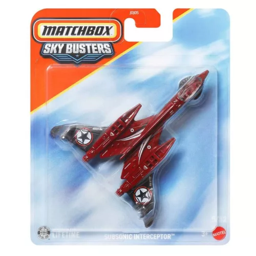 A Matchbox Sky Busters kollekció a valósághű és fantáziadús légi járművek világába repíti a gyerekeket és a gyűjtőket. Ennek a sorozatnak az egyik legkülönlegesebb darabja a Subsonic Interceptor, egy futurisztikus, vadászgép stílusú modell, amely garantáltan mindenkit lenyűgöz. A gép feltűnő, bordó festést kapott, amelyet fekete szárnyvégek és látványos csillag-emblémák tesznek még egyedibbé.
