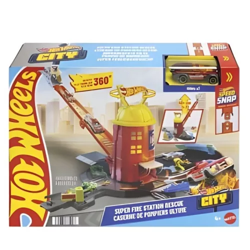 A játékszett központi eleme a 360 fokban elforgatható torony, amely lehetővé teszi, hogy a mentőcsapatok bármely irányba elinduljanak. A torony tetején lévő fogantyú elforgatásával a gyerekek kiválaszthatják a bevetés útvonalát. A leglátványosabb elem kétségkívül a mentő létra, amely egy lenyűgöző, kb. 40 cm hosszú gravitációs rámpává alakítható, amin a mellékelt Hot Wheels tűzoltóautó elképesztő sebességgel száguldhat le.
