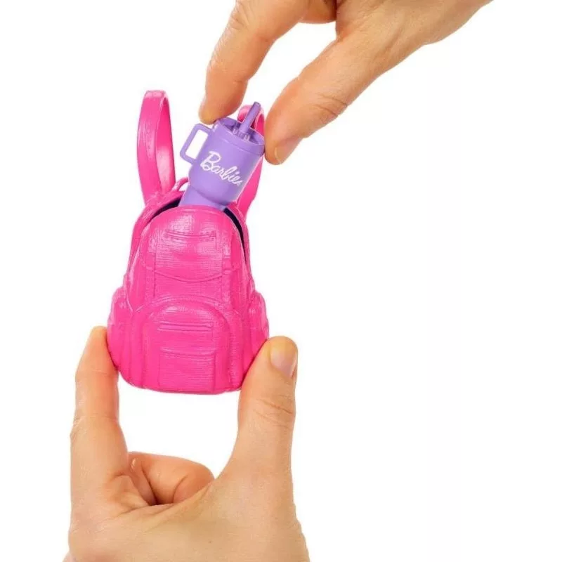 Csomagolás tartalma1 db Barbie 'Malibu' baba, 1 db kiskutya figura, 1 db hátizsák, 1 db póráz, valamint több mint 10 kiegészítő (pl. sapka, napszemüveg, fényképezőgép, walkie-talkie, vizes palack, kutyatál, kutyacsont)