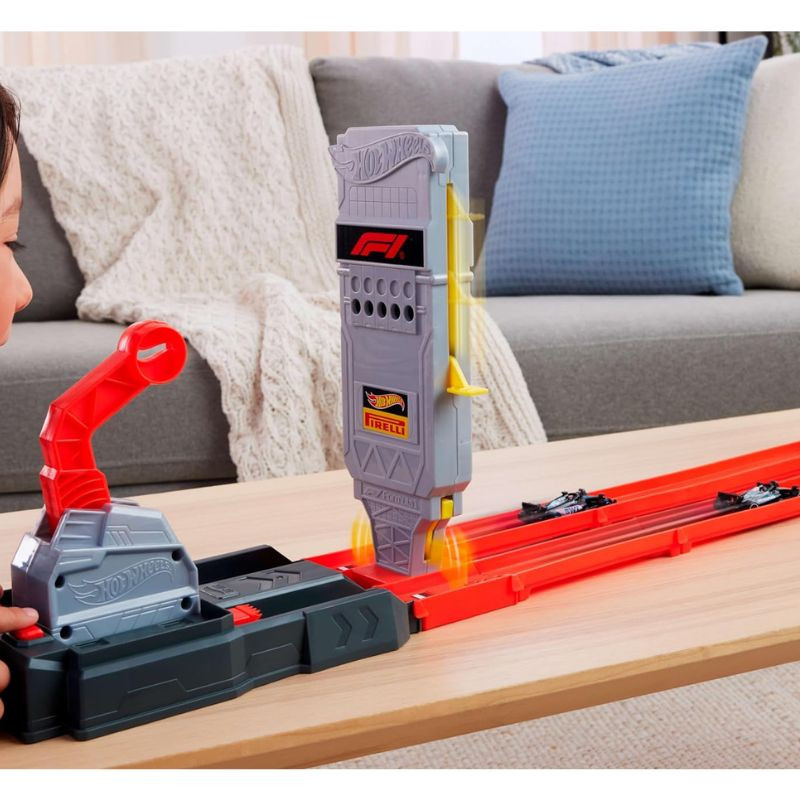 A motorok felbőgnek, a startlámpák kialszanak... Indulhat a verseny! A Hot Wheels Formula 1 Céllegyenes pálya játékszett a száguldó cirkusz legizgalmasabb pillanatait, a rajtot és a befutót hozza el a gyerekszobába. Ezzel a készlettel a gyerekek igazi F1-es pilótáknak érezhetik magukat, miközben barátaikkal és családtagjaikkal mérkőznek meg a győzelemért.