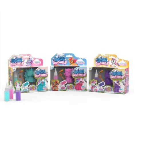 A kaland a fürdőkádban kezdődik! Töltsék meg a kádat meleg vízzel, és figyeljék, ahogy a bájos unikornis meleg víz hatására megváltoztatja a színét, és csodálatos, rejtett mintákat tár fel. Ez a varázslat újra és újra megismételhető, így a játék sosem válik unalmassá. A gyerekek a mellékelt kefe és szivacs segítségével gondoskodhatnak új kedvencükről, ami fejleszti a gondoskodó viselkedést.