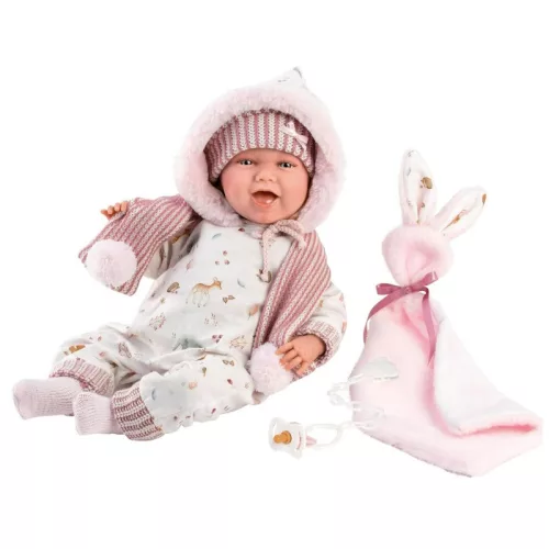 Llorens: Újszülött nevető lány baba nyuszis babatakaróval, cumival (40 cm)