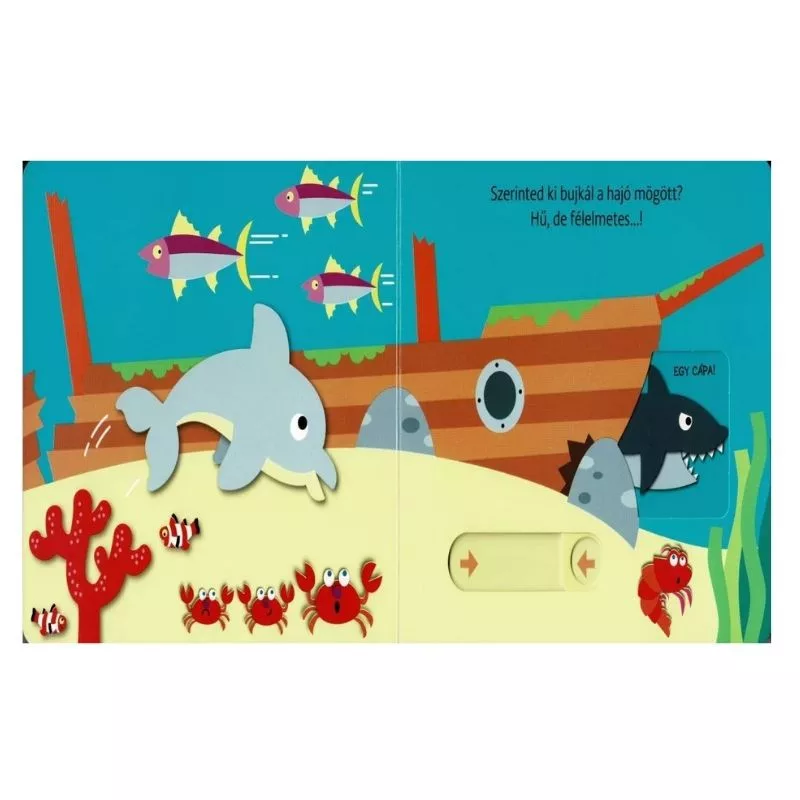 Fedezze fel gyermekével a tenger mélyének titkait ezzel az interaktív lapozóval! A mozgatható elemek segítségével a kicsik játékosan ismerkedhetnek meg a tengeri állatokkal, miközben finommotorikus készségeik is fejlődnek.