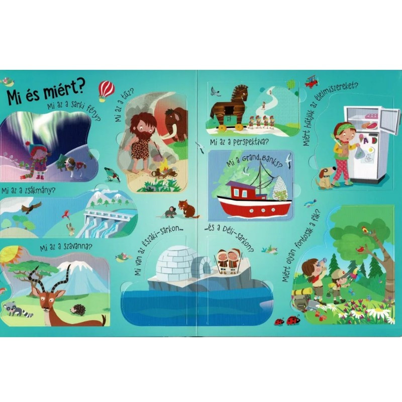 Fedezze fel gyermekével a világot a 'Nyisd ki és fedezd fel' interaktív könyv segítségével! A több mint 50 felnyitható ablak mögött rejlő kérdések és válaszok játékos formában tanítják a legkisebbeket a bolygónk csodáira.
