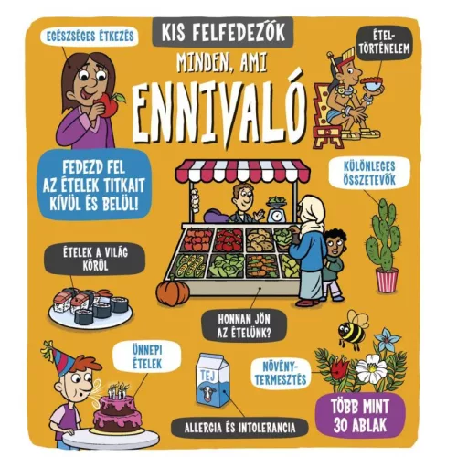Vajon mi minden történik az étellel, miután bekerül a szervezetünkbe? Milyen utat jár be a búzaszem, mielőtt kenyér lesz belőle? A „Kis felfedezők – Minden, ami ennivaló” című ismeretterjesztő könyv ezekre és még sok más, az ételekkel kapcsolatos kérdésre ad választ a gyerekek számára is érthető, szórakoztató módon. Ez a kötet egy igazi kalandra hívja a kicsiket az ízek és tápanyagok birodalmába.