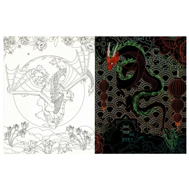 Rejtőzködő sárkányok - Kifestőfüzet kaparós és színezős oldalakkal