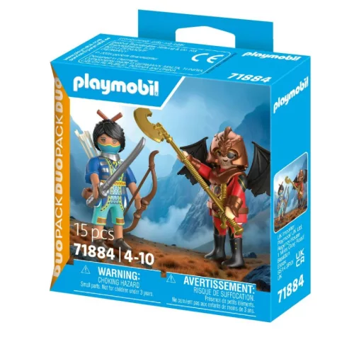 Keltse életre a Novelmore és a Burnham Harcosok legendás összecsapását ezzel a Playmobil Duo Pack készlettel! A csomag két részletgazdagon kidolgozott figurát és harci kiegészítőiket tartalmazza az akciódús szerepjátékokhoz.