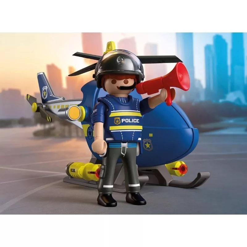 A helikopter forgatható rotorlapátokkal rendelkezik, amelyek valósághű játékélményt biztosítanak felszállás és leszállás közben. A pilótafülke könnyedén kinyitható, így a bátor rendőr figura pillanatok alatt elfoglalhatja a helyét, hogy megkezdje a bevetést. A gyanúsítottaknak esélyük sincs, ha ez a gép a levegőbe emelkedik!