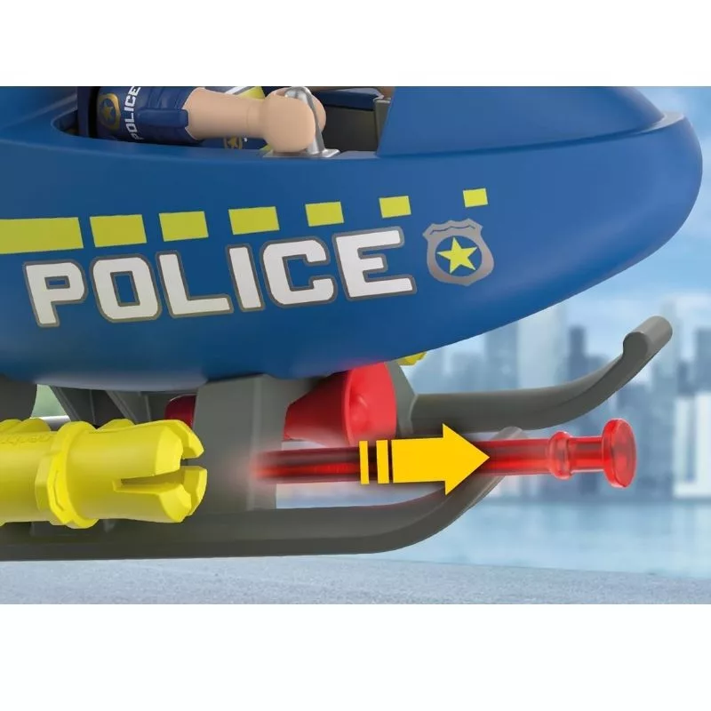 Az igazi akciót a helikopter oldalára szerelt, működő ágyúk garantálják. A gyerekek lövedékeket tölthetnek az ágyúkba, hogy egy gombnyomással megállítsák a szökést. A rendőr a megafon segítségével szólíthatja fel a bűnözőket a megadásra, ezzel is fokozva a szerepjáték élményét.