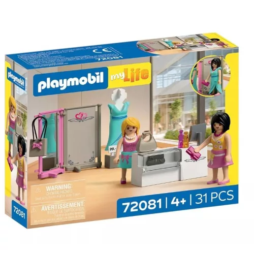 A játékszett két Playmobil figurát tartalmaz, így a gyerekek azonnal belekezdhetnek a szerepjátékba. Lehetnek ők a segítőkész eladók, akik bemutatják a legújabb kollekciót, vagy a divatrajongó vásárlók, akik a tökéletes szettet keresik. A részletgazdag kiegészítők, mint a felnyitható vitrin, a próbababa és a paraván, még valósághűbbé teszik a játékélményt.