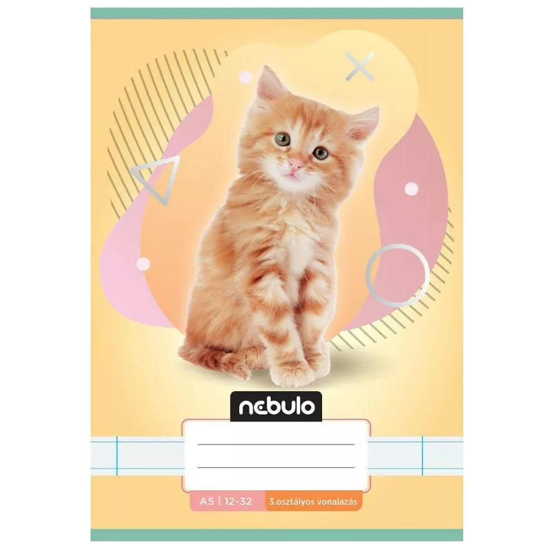 Nebulo A/5 vonalas füzet - Állatos minták Cicás (12-32, 3. osztály)